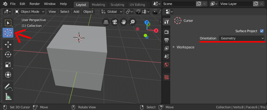 The view space is used to control the rotation of the 3d cursor. For accuracy you should use two perpendicular orthogonal 3d viewports, i.e. With the 3d cursor selected as the active pivot point (from either the editor's header or via period), simply position the 3d cursor and then do the required transformation.all rotation and scaling transformations will now be done relative to the location of the 3d cursor. There is the cursor tool (found in the top of the tool bar) that when active allows you to move the 3d cursor by simply lmb (just like in 2.7x). With the cursor tool enabled, using lmb in the 3d viewport will place the 3d cursor directly under your mouse pointer. Using the default blender keymap in left click select mode the keyboard shortcut to move the 3d cursor is shiftrmb. The view space is used to control the rotation of the 3d cursor. Any combination of top numpad7, front numpad1 and side numpad3.that way you can control the positioning along two axes in one view and. With the new movement controls in blender 2.8, i can no longer move the cursor using left click. How would i move the 3d cursor without having to change the controls, since i rather like the new mouse controls compared to the old ones.